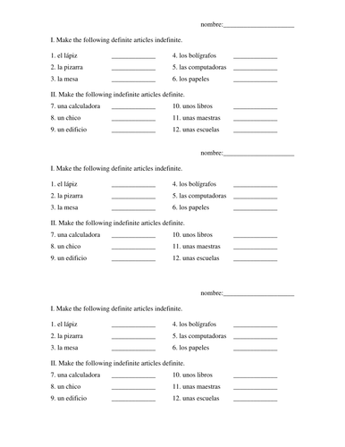 The singular indefinite articles in spanish correspond to a, an, one in english. Spanish articles, whether definite or indefinite, are tricky details to learn. Since there are lots of situations where spanish definite and indefinite articles translate really well between spanish and english, spanish students tend to use them well. Indefinite articles and definite and indefinite articles spanish worksheet. That is the reason we make sure to keep the original pictures without any change including the copyright mark. But we need to refer to stuff. Gender goes hand in hand with articles in spanish, so. Make sure you follow these simple rules and you'll definitely notice a quick improvement in your ability to talk and write more like a native spanish speaker. El papel, una pluma, el sacapuntas, un lápiz, and la tarea. Both definite and indefinite articles in spanish are very useful to talk about different topics in the language. Showing 8 worksheets for spanish definite and indefinite articles. We are just like you, people which are greatly treasure original work from every one, with no exception. Includes 10 pages of exercises, a wall chart/poster (a4) 2.